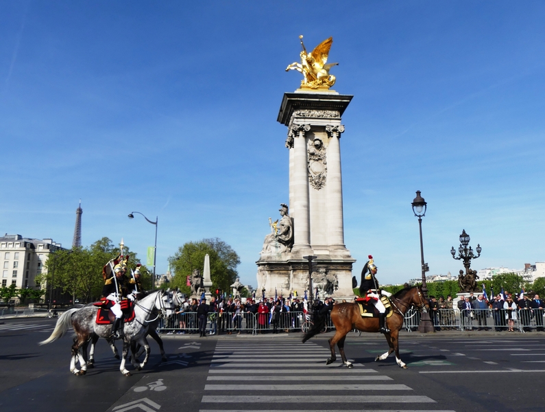 - 2017, 6eme Régiment du materiel, cavalerie, escadron, escorte, garde républicaine, grande escorte, invalides, Paris, Pont Alexandre III
