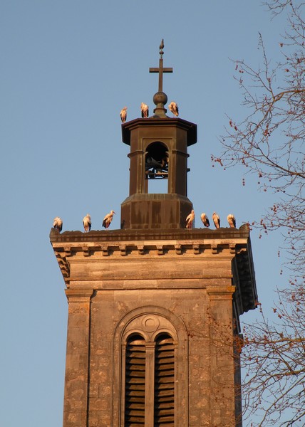 Cigognes sur le clocher de Liesle