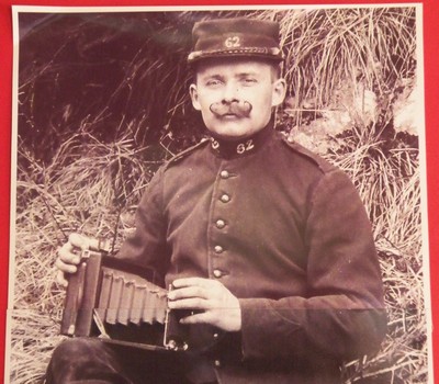 Pour ceux qui ne me connaissent pas, cette vieille photo d'un militaire photographe vous donnera une idée assez précise de mon physique, uniforme en moins et appareil photo plus récent :
