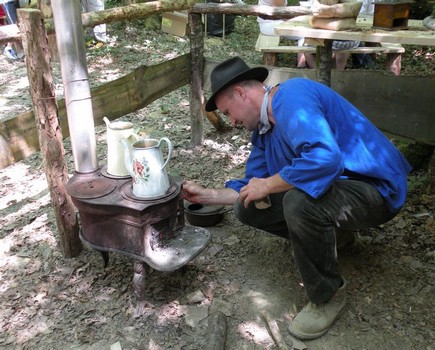 Le café a chauffé sur de vieux fourneaux à cercles :