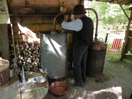 Les bouilleurs de cru en action avec l'alambic :
