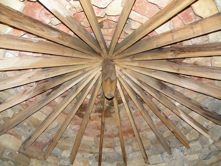 Une caborde (maison, ou plutot abri de vignerons ou de berger, entièrement en pierre a été construite) : voici la charpente provisoire soutenant la voute de pierre :