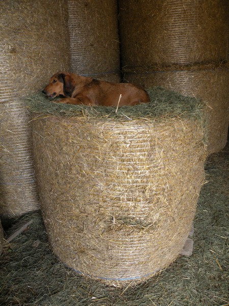Roxane sur son lit de foin