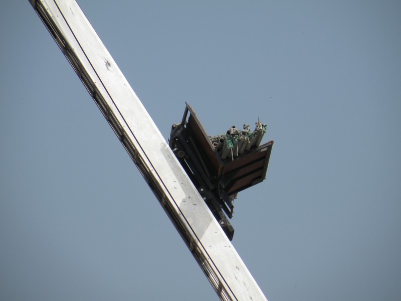 Un monte charge permet de monter les éléments de l'échaffaudage